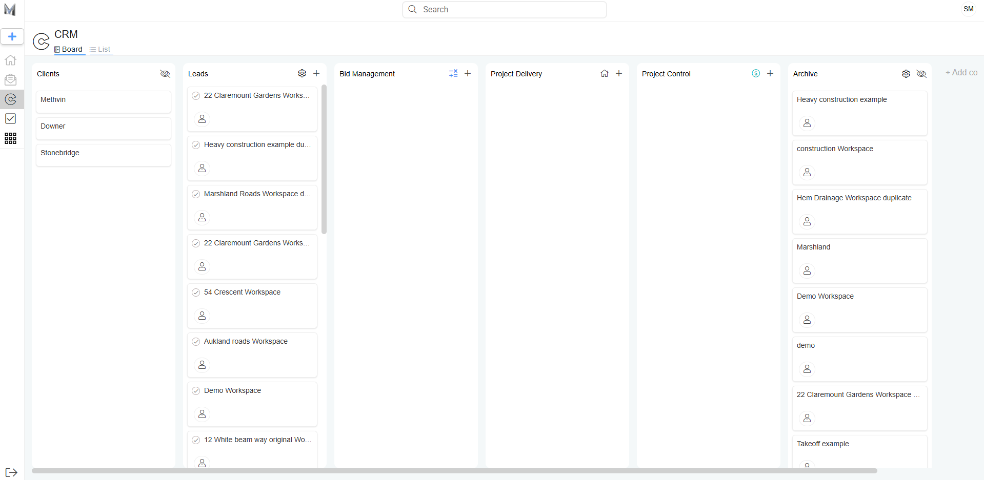 Every team operates differently, and Methvin’s CRM reflects that by allowing high levels of customization. You can rename columns, reorder them, add new ones, and define which project app opens when a workspace card is clicked. For example, if your preconstruction team uses the Estimate app daily, you can configure the Bid Management column to always open it by default. You can also tailor startup behavior, hide unused columns, and decide whether the Clients column appears on your board. This flexibility ensures that CRM doesn’t force you into a rigid system—it adapts to the way you work.