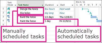 You can change a task’s scheduling back and forth from automatic to manual (click File, click Options, then click Schedule). When you change task modes, keep the following in mind.
