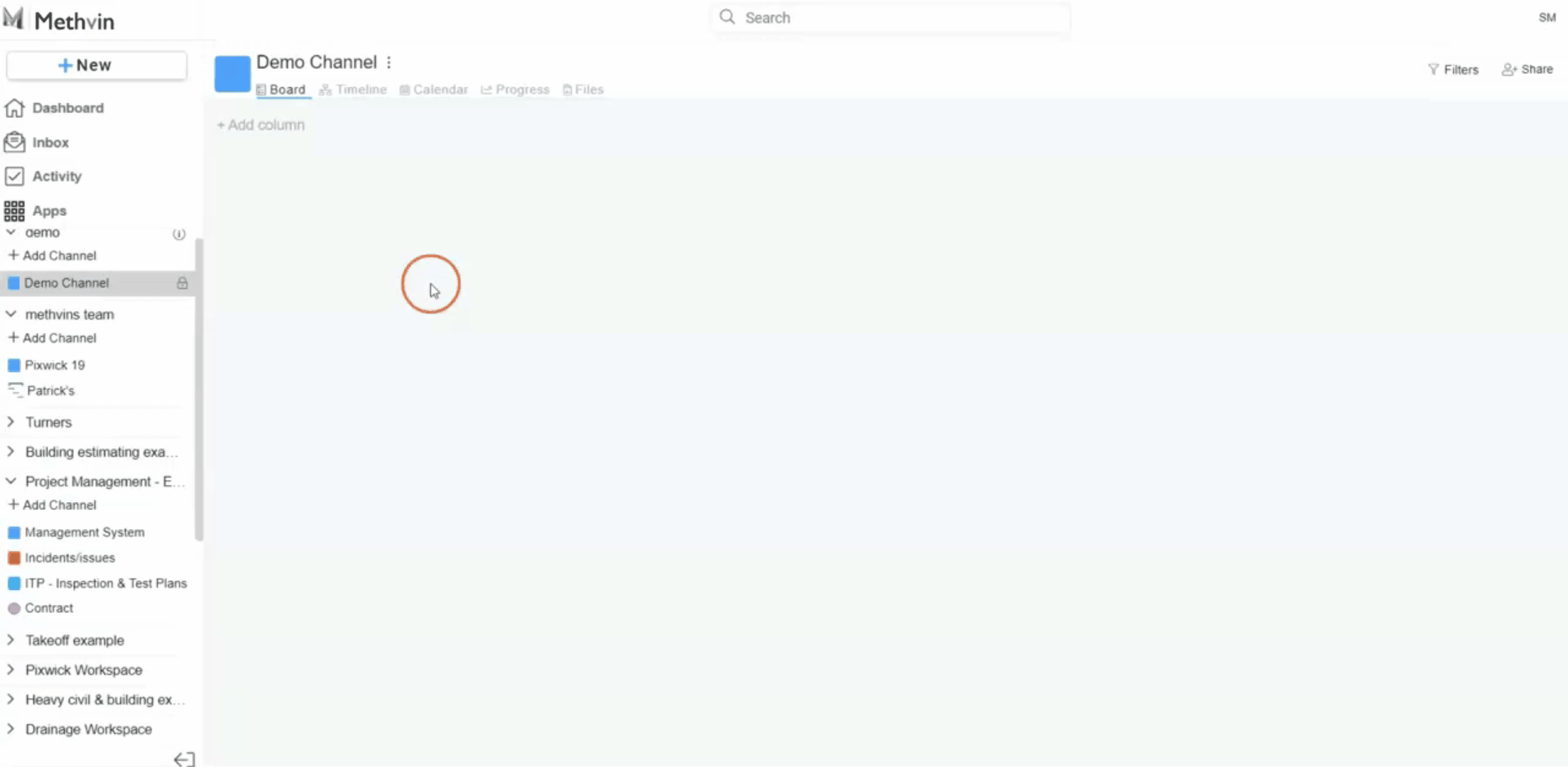 After creating a channel with the Project Management app type, you can access and manage it from the workspace panel.