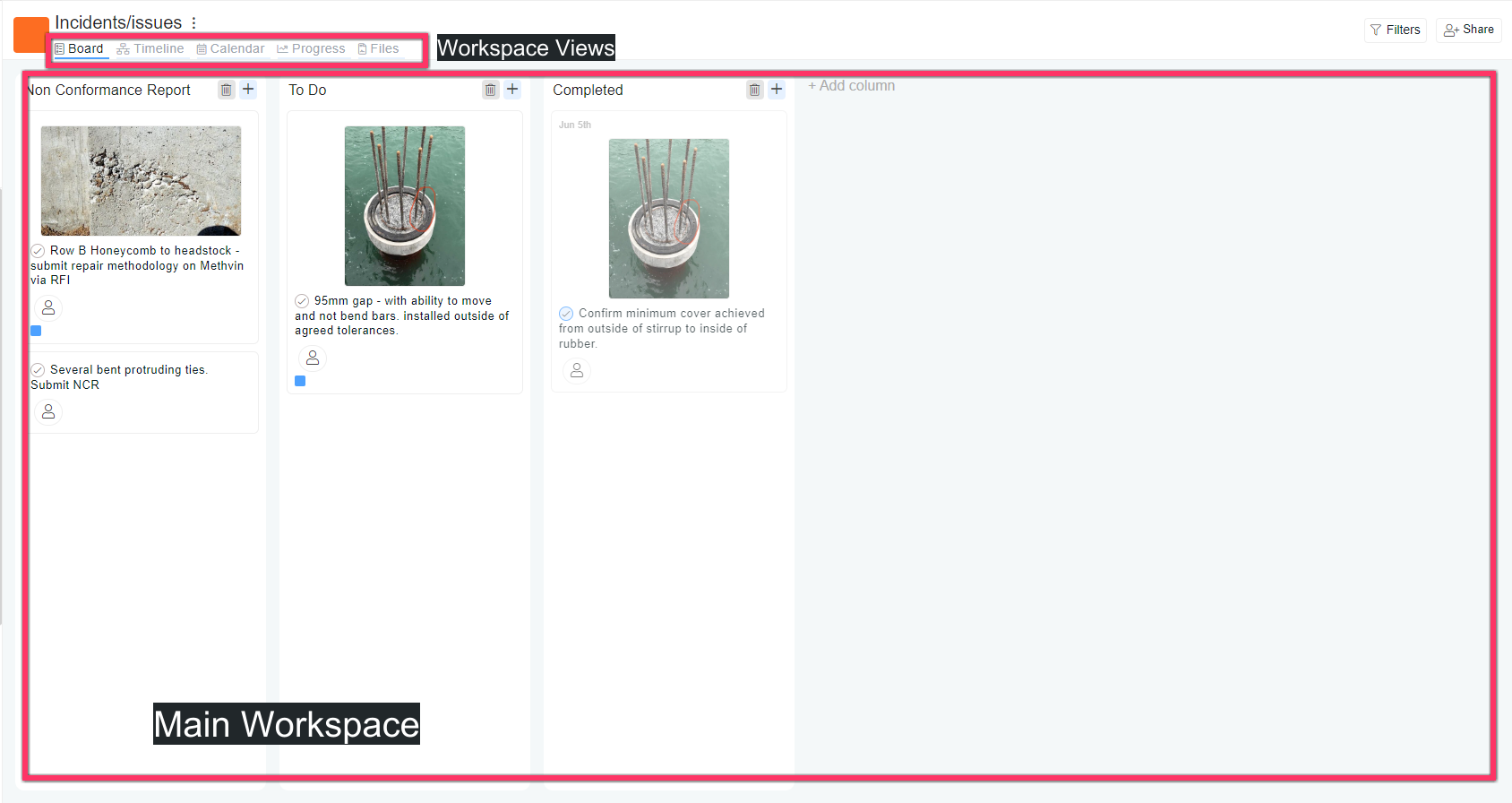 - Channel Board: By default, the view is set to the Board layout, where you can create and organize tasks in columns.