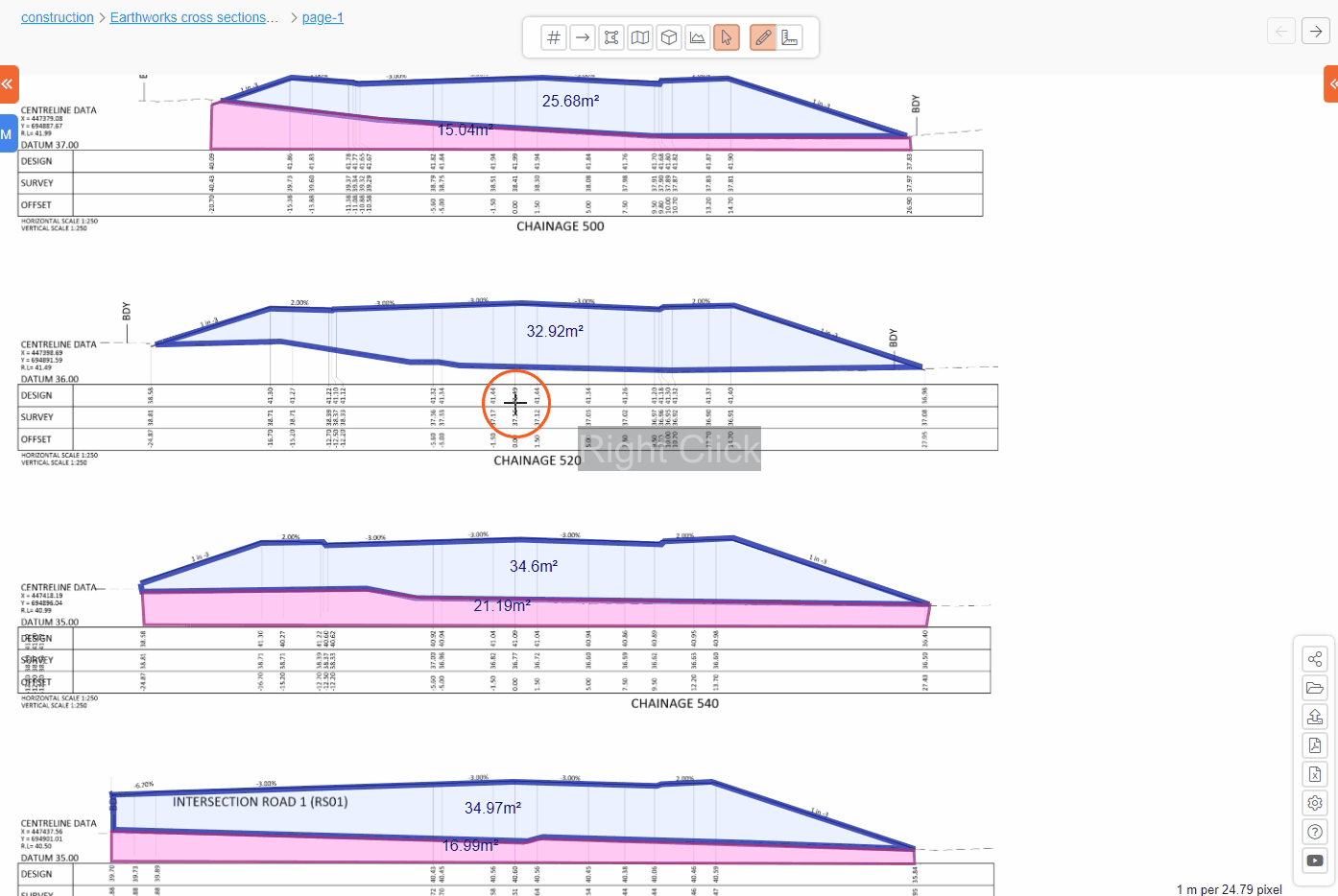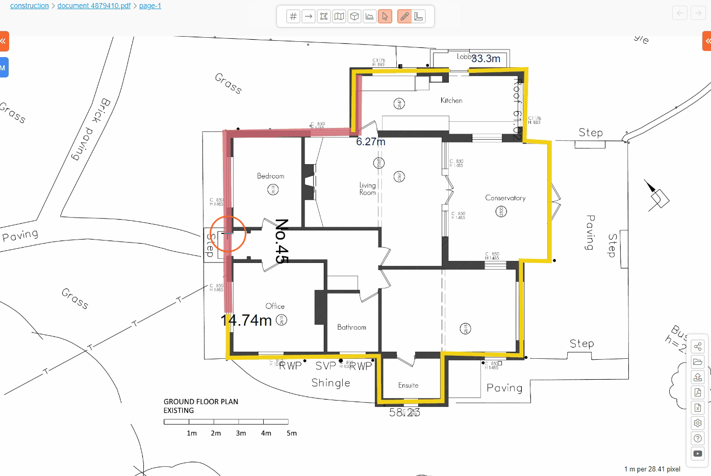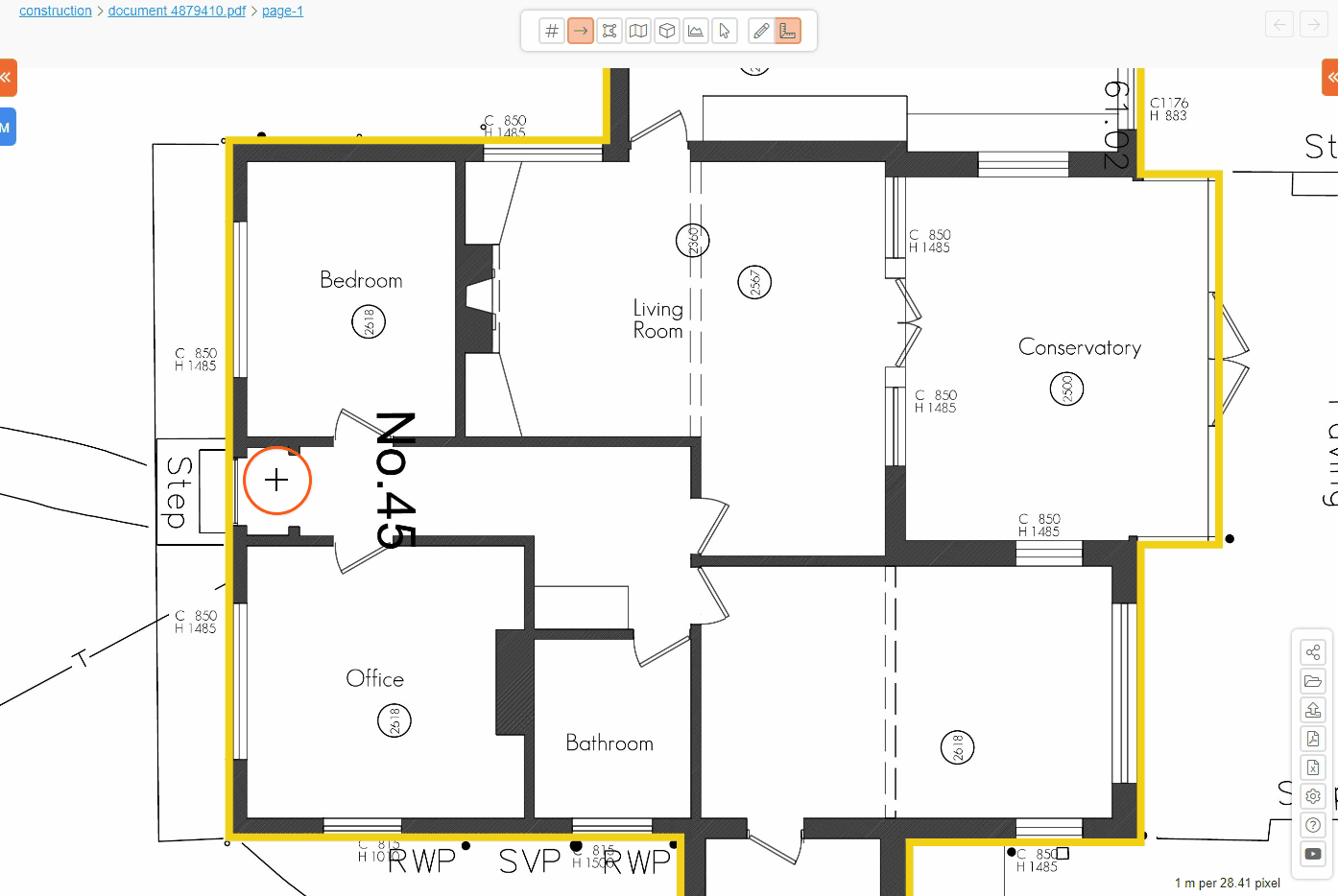 The “Access Properties” feature allows you to change the color, adjust the opaqueness, set the line width and style, and display quantity text for a measurement. This helps in better visualization and organization of your measurements on the plan. You can access and adjust various properties of a measurement to customize its appearance and how it displays on your plan. Follow these steps to access and modify measurement properties,
